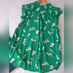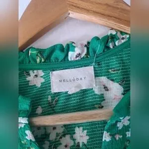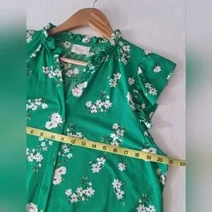 MELLODAY green floral short sleeve Flutter sleeve LARGE hi-low top