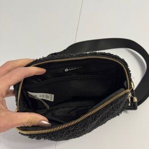 Lululemon Everywhere Fleece Belt Bag Black Gold Zipper Sherpa Crossbody