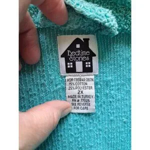 Bedtime Stories Turquoise Terry Cloth Robe Monkey Toucan Embroidery Women's 2X