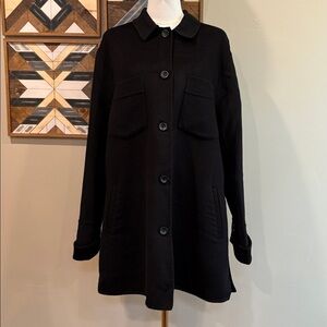 NakedCashmere Felted Wool Cashmere Black Shacket Button Up Cardigan Jacket Large