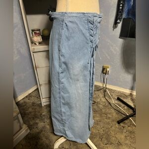Lafei-nier denim maxi skirt with slit Wester boho large