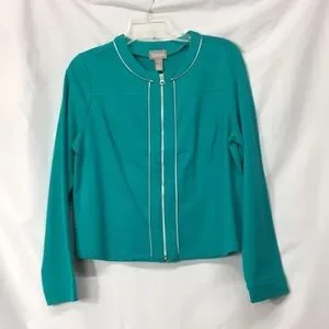 Chico’s Women’s Teal Zip-Up Jacket Size 1 Like-NEW, long sleeves, zipper and zipper accents, long sleeves, crew neck