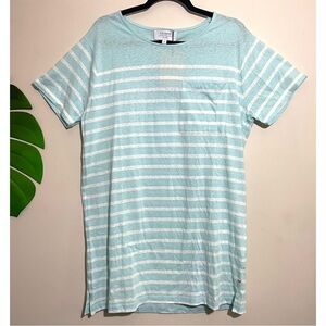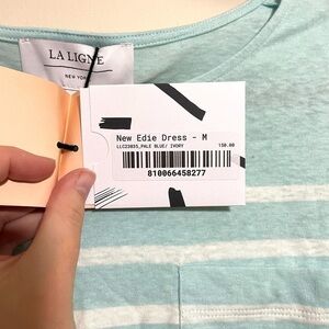 Tags: Coastal Preppy Aesthetic, Quiet Luxury Basics, Nautical Stripe Trend, Architectural T-Shirt Dress, Effortless French Girl Style, La Ligne NYC, Size Medium, Pale Blue Ivory, New With Tags, Transitional Knitwear.