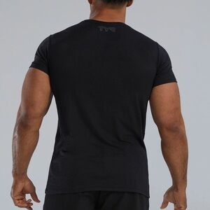 Experience comfort and style with the TYR Men's Black T-Shirt. Perfect for casual outings, this shirt offers a sleek look with its classic black color.
