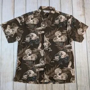 Boca Classics Parrot playing Poker Hawaiian Shirt Short Sleeve Button Up M
