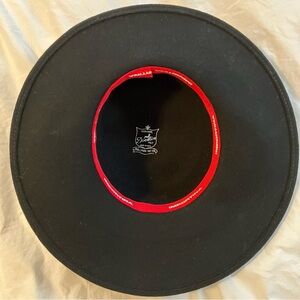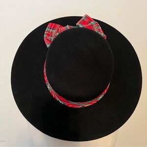 Black felt wool hat with tartan plaid ribbon.
