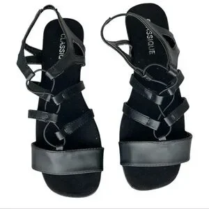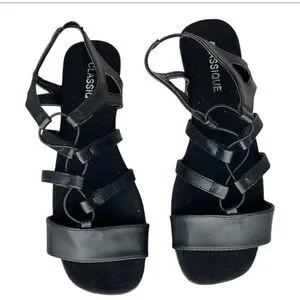 Classique Harper Black Women's Size 8 Stretch Upper 11/4" Heel Sandals New