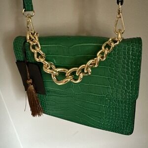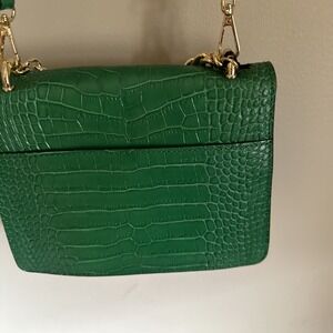 House Of Harlow 1960 Croc Embossed Leather Crossbody Bag Green Made In Italy NEW