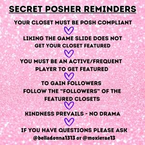 @belladonna1313 🌈 Shared/Followed Monday and Tuesday 🎩 Congrats Secret Features 👩🏻🦰 I hope your week is off to great start 🍀 Happy Poshing!!