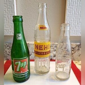 VINTAGE SODA BOTTLES GROUP OF 3 - 7UP, GRAPETTE & NEHI