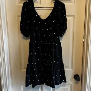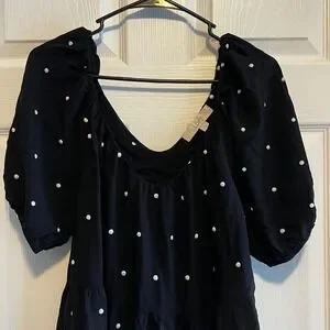 LOFT Black Polka Dot Tiered Puff Sleeve Square Neck Mini Dress Womens Medium