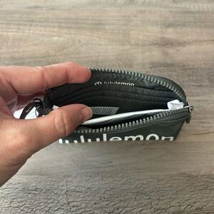 Sleek green/grey card holder by Lululemon. Includes a convenient clip attachment.