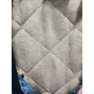 Features: Button Front, Collarless, Denim, Beige Sleeves Sleeve, Embroidered, Quilted liner, Casual, Travel, Pockets
