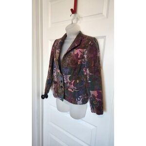 VTG Jack Winter Tapestry Blazer Jacket Floral Multicolor Boho Artsy Women's Lg