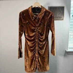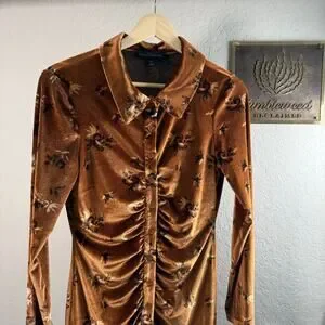 Women's House of Harlow Amber Floral Ruched Front Button Front Dress Size Small