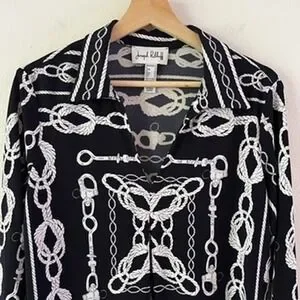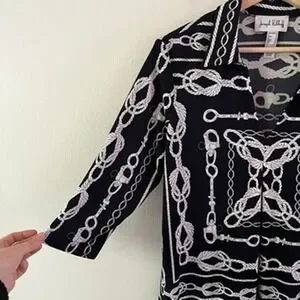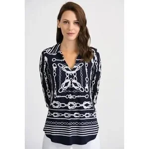 Joseph Ribkoff Nautical Rope V-Neck Top in Midnight Blue/Vanilla size 12