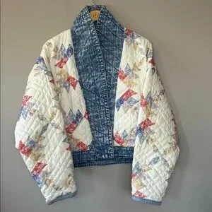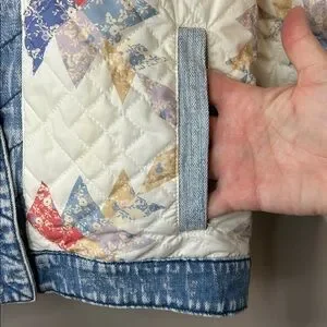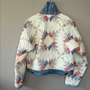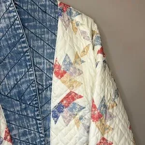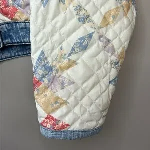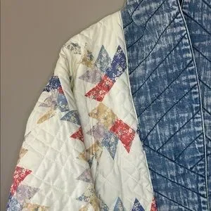 Blank NYC Making Memories Patchwork Quilted Jacket Denim Trim Oversized Small. EUC/excellent used condition
