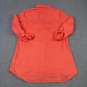 Sigrid Olsen Linen Top Orange Roll Sleeve Women's Size M Tunic Lagenlook Coastal