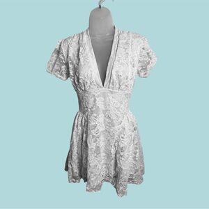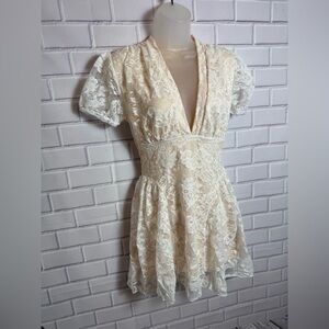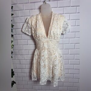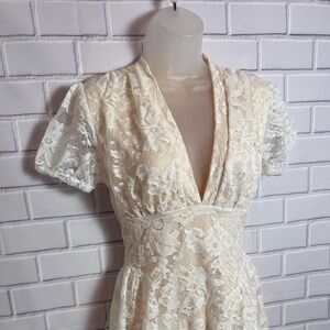 SHEIN Cream Lace Mini Dress Size M Deep V Neck Romantic Boho Party Bridal