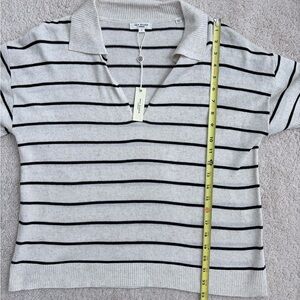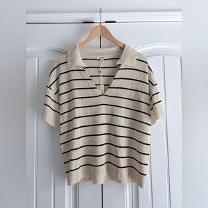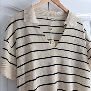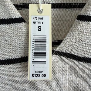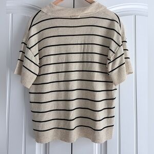 Max Studio Sweater Womens Large Ivory Black Striped Linen Blend Short Sleeve Top