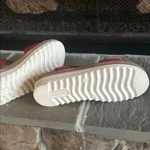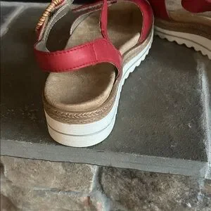 Chic orange sandals by Remonte. Features tan accents and a stylish buckle. Ideal for summer wear.