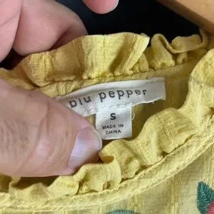 Blu Pepper Yellow Flutter Sleeve Embellished Blouse Sz S - oversized