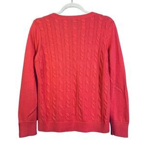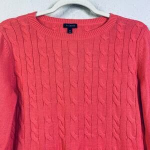 TALBOTS Sweater M Cable Knit Lambswool Blend Coral Crew Neck Classic Timeless