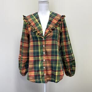 Free People Molly Plaid Ruffle Top XS Festival