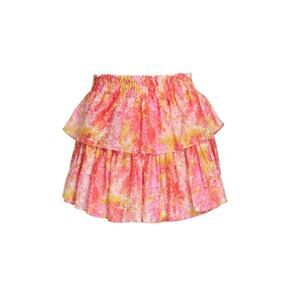 LOVESHACKFANCY Ruffle Floral Cotton Silk Pink Skirt