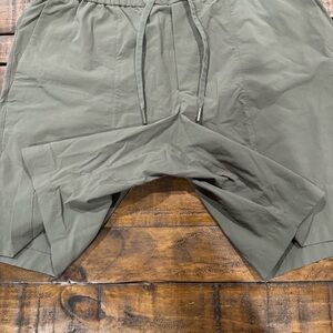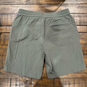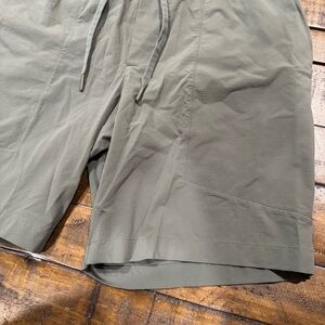 I have here this very comfortable green athletic lightweight shorts. This pair of shorts is by Lululemon and is a size Large.
