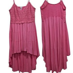Women's Pink Barbie High Low Crochet Boho Goddess Dress Size 2X