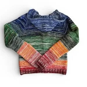 Vibrant hoodie with multicolor stripes. Cozy and stylish for any outing.