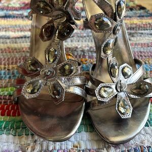American Eagle Outfitters Silver Heels with Elegant Floral Design