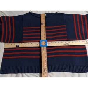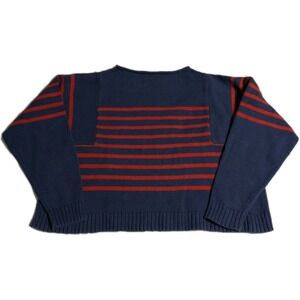 Madewell Womens M Boxy Cropped Striped Sweater Navy Red Breton Cotton