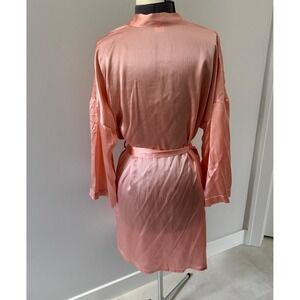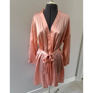 Silksilky Peach 100% Silk Robe Short Kimono Wrap Women's LG Loungewear Bridal