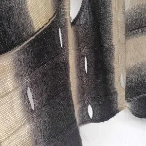 Cozy, artsy, and perfect for layering — this SISTERS knit sleeveless vest features a gorgeous black-gray-cream ombré fade with unique intentional ladder-style cutout details down the back. Soft, warm, and lightweight with a beautifully draped asymmetric hem. Open front (no closures), wide collar, and a relaxed boho silhouette.