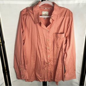 Elevate your wardrobe with the Women's Button Down Shirt in a stylish peach/coral. Perfect for both casual and formal occasions, this shirt offers a comfortable fit and a classic design. Buttons on each side of the blouse.