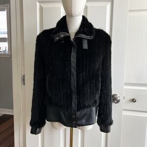 PELLESSIMO Paris Vintage Genuine Black Mink Fur Leather Bomber Jacket Sz M