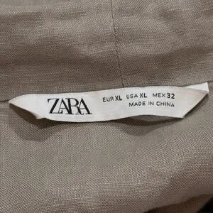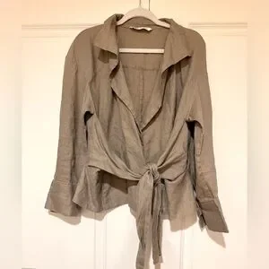 Zara Beige / Gray Tie 💯% Linen Top/Jacket sz XL