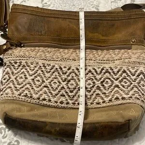 Stylish shoulder bag with a woven pattern. Features brown and tan colors. Perfect for everyday use. In very good condition, no damage, a little dirty inside but on the outside it looks just like the photos, it is adjustable, perfect for daily use, see photos for size