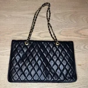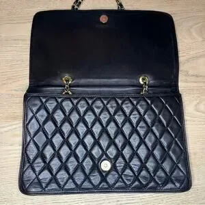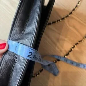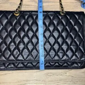 Vintage Jeunesse Quilted Black Leather Purse Clutch Gold Chain Strap