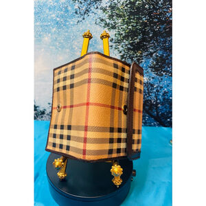 Burberry Haymarket Check Bi-Fold Wallet Tan/Brown One Size EUC