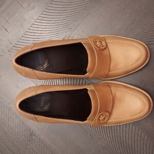 Step out in style with these elegant tan heeled loafers. Perfect for any occasion, these shoes offer both comfort and sophistication.