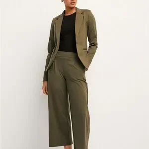 Ichi Mossy Green Supple Cinched Jersey Stretch Single Breast Blazer Medium