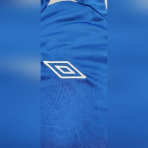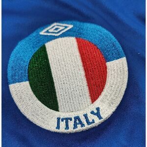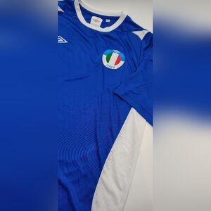 Italy soccer shirt by Umbro. Features blue and white design with Italy emblem. Size medium In preloved good condition.