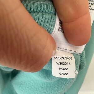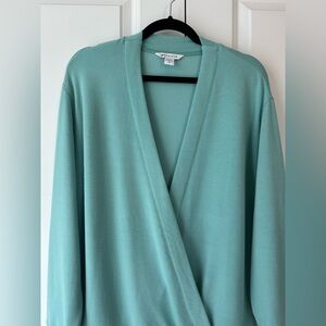 Athleta Women’s Purana V-Neck Wrap Sweatshirt Dusty Jade in Size Medium. This is in good used condition, with some very light wash wear, otherwise no flaws to note. Pit to pit is approximately 22, length is approximately 38” and sleeve length is approximately 22”.