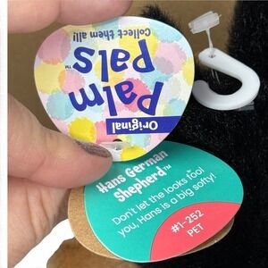 Details: Original Palm Pals Hans the German Shepherd Dog plush. Collectible 5 inch mini stuffed animal, perfect for desk, shelf, or cuddling. Style #1-252 PET.