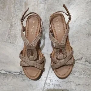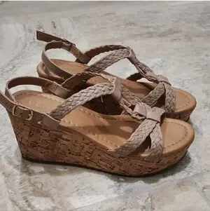 Step out in style with these chic tan wedge sandals. Perfect for any occasion, these sandals offer both comfort and elegance.