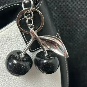 Cats (Made In Spain) Black and White Leather Bag w/Cherry Charm Approx. 13x9 x 2