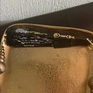 #1211=Elegant Black and Gold Lace Fan